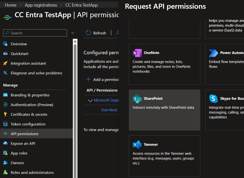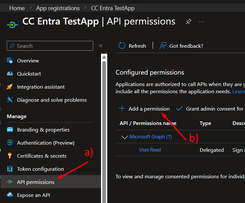 Open the newly created app registration and go to API permissions.