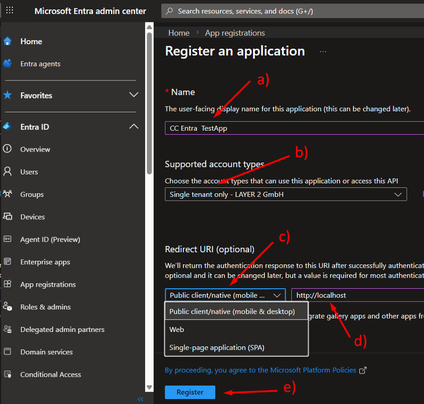 - Redirect URI type: Public client (mobile & desktop)