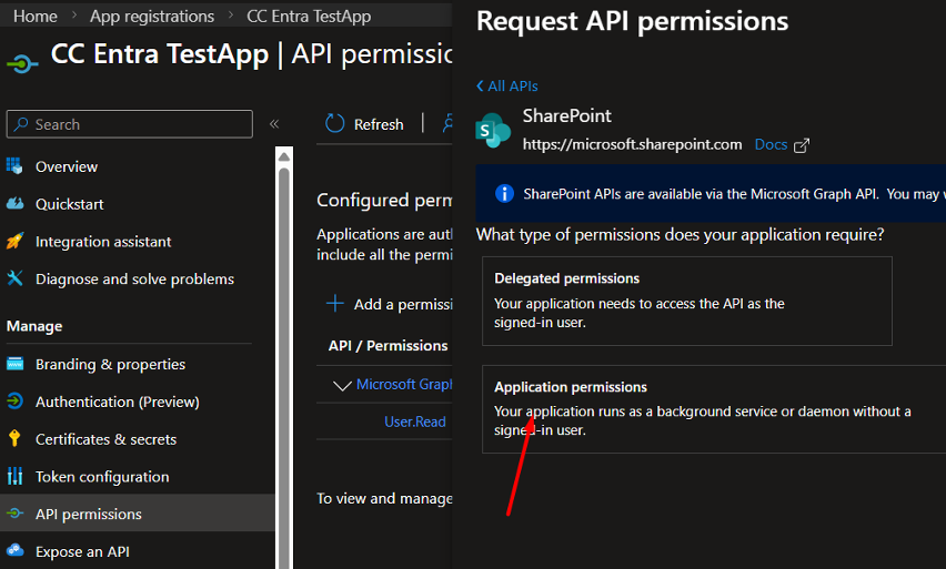 Select Application permissions