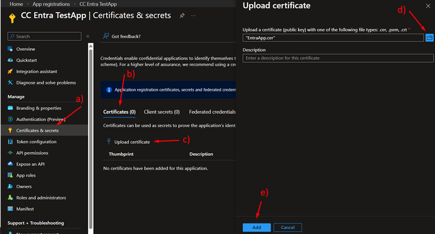 .cerfile is uploaded to the app registration in Microsoft Entra - The